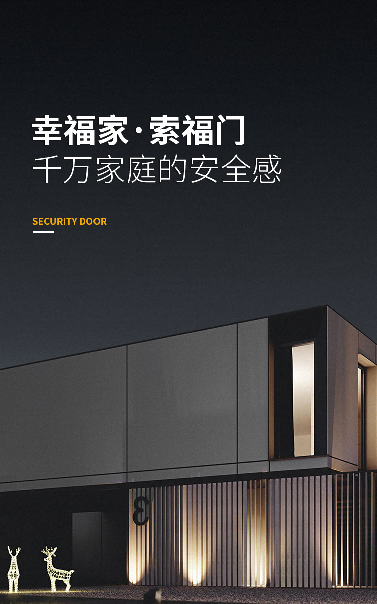 索福為實(shí)現(xiàn)多元化綠色發(fā)展,產(chǎn)品品類由原來的防盜門、防火門、鋼木裝甲門、拓展延伸出高端鑄鋁門、精品安全門、室內(nèi)無漆木門、智能鎖、保險(xiǎn)柜、保險(xiǎn)箱、防火窗等以房配為核心的建材企業(yè),同時(shí)設(shè)立獨(dú)立自主的門業(yè)檢測中心和國際化展廳來推進(jìn)產(chǎn)品質(zhì)量和服務(wù)體系.......。